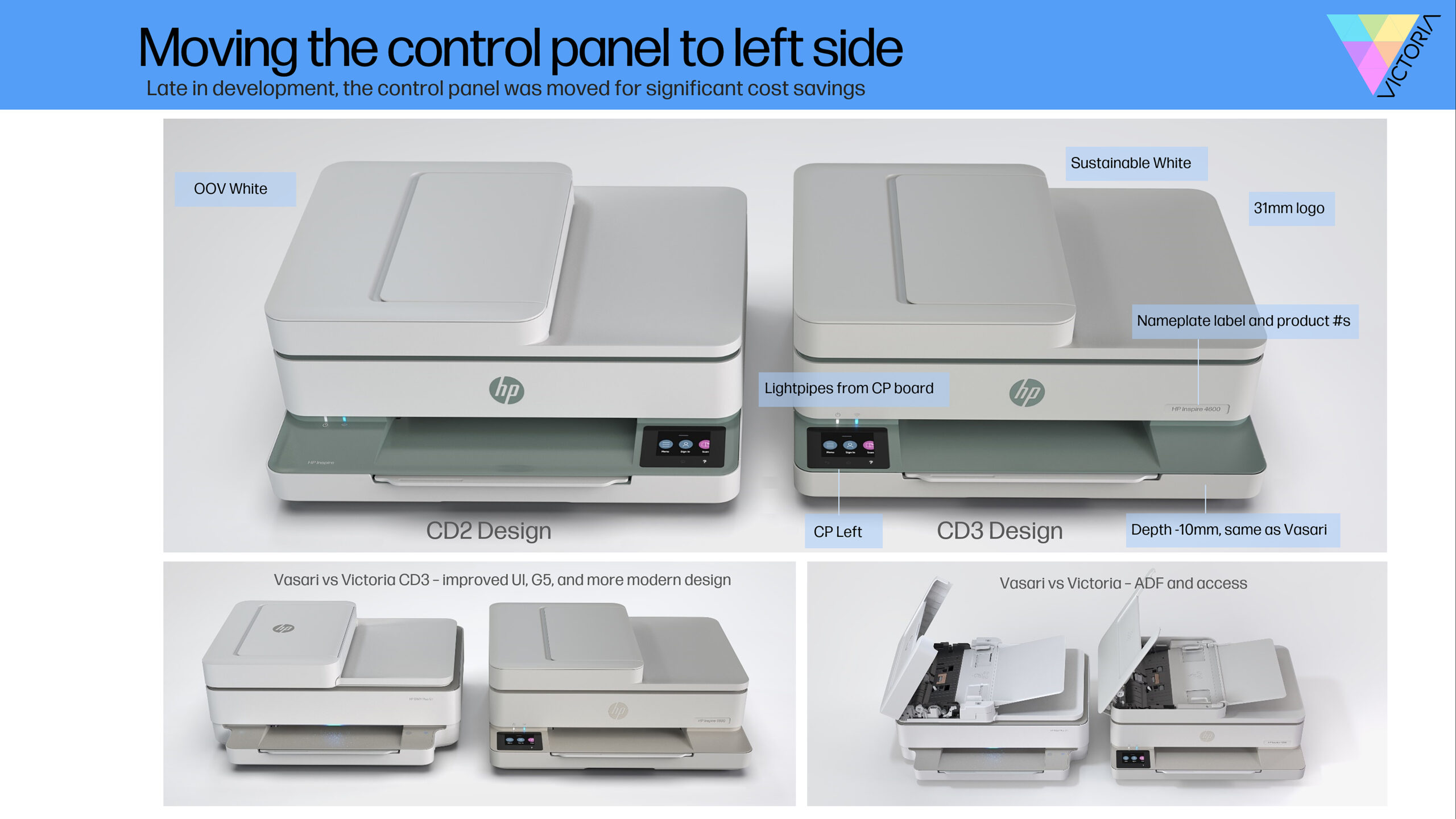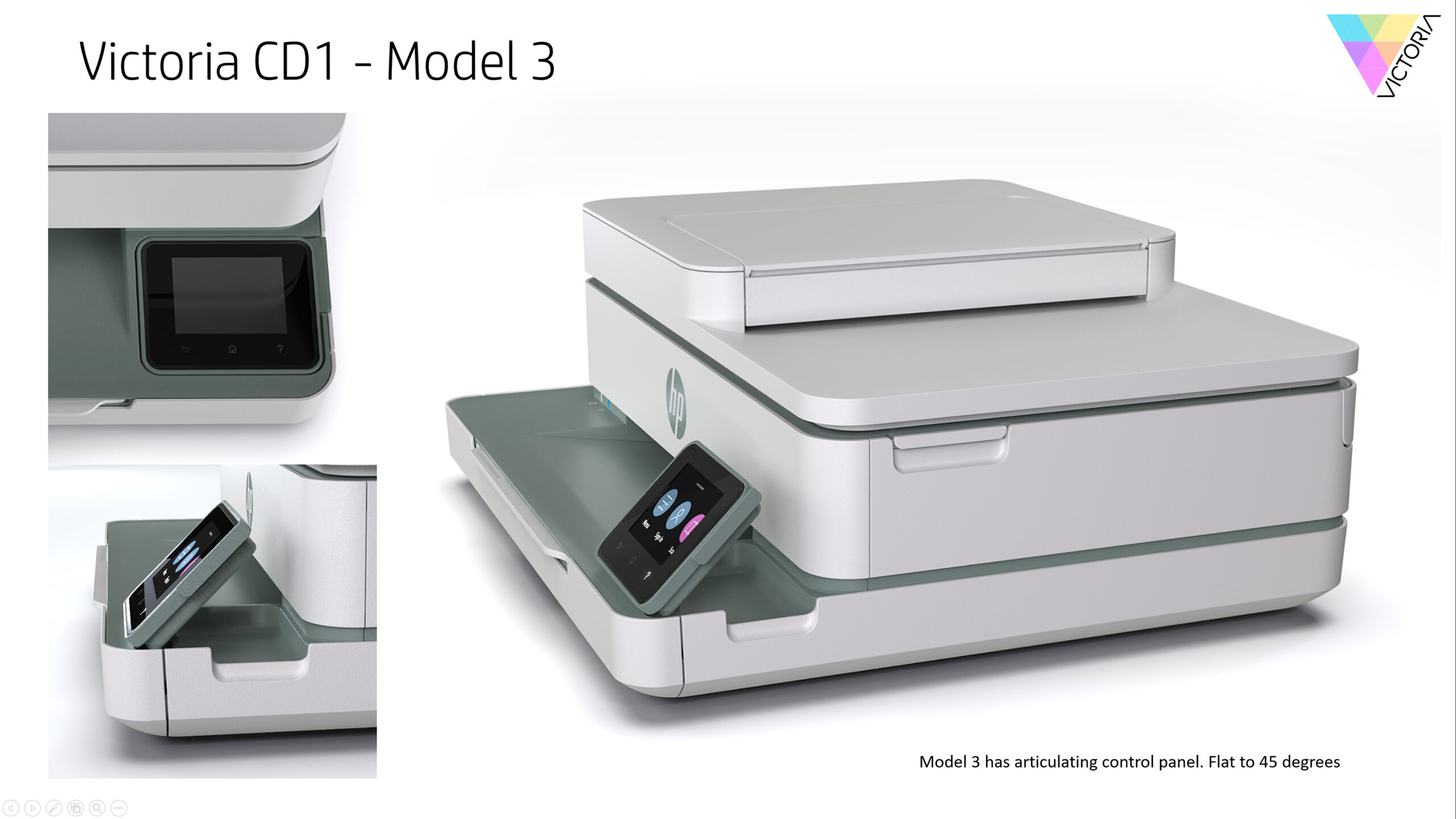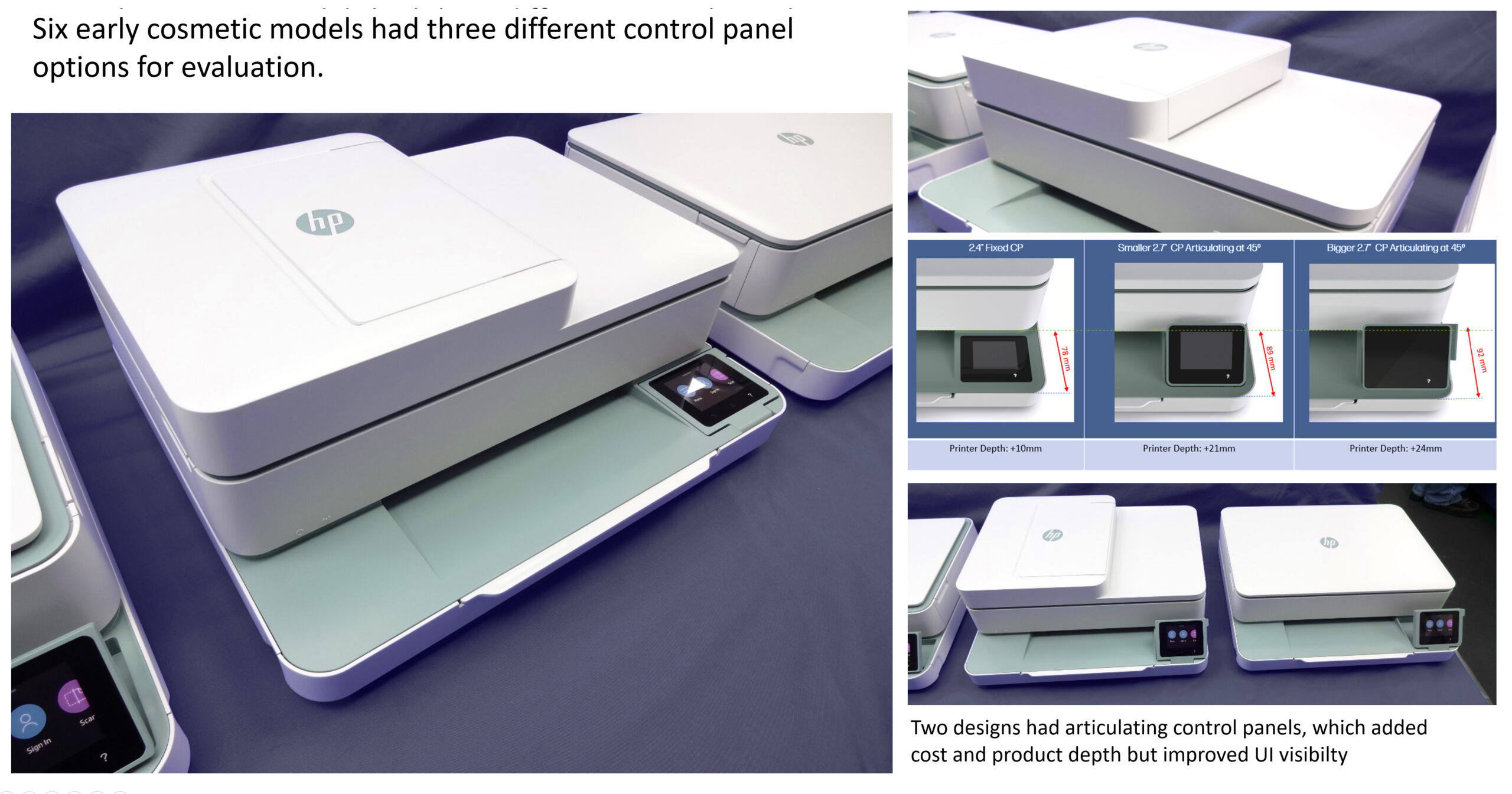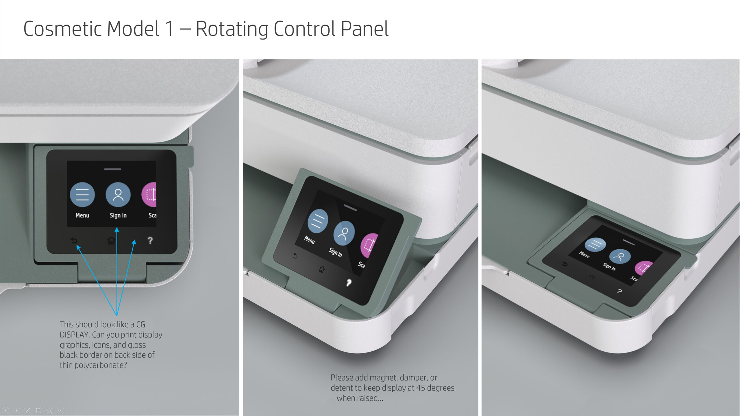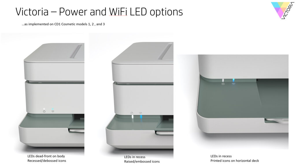 Another cosmetic model with updates and control panel on left for evaluation. Worked with Arrk Dison in Taiwan, to create models in less than 3 weeks. Many had illuminated control panels or LEDs that we could turn ON and OFF for user testing…