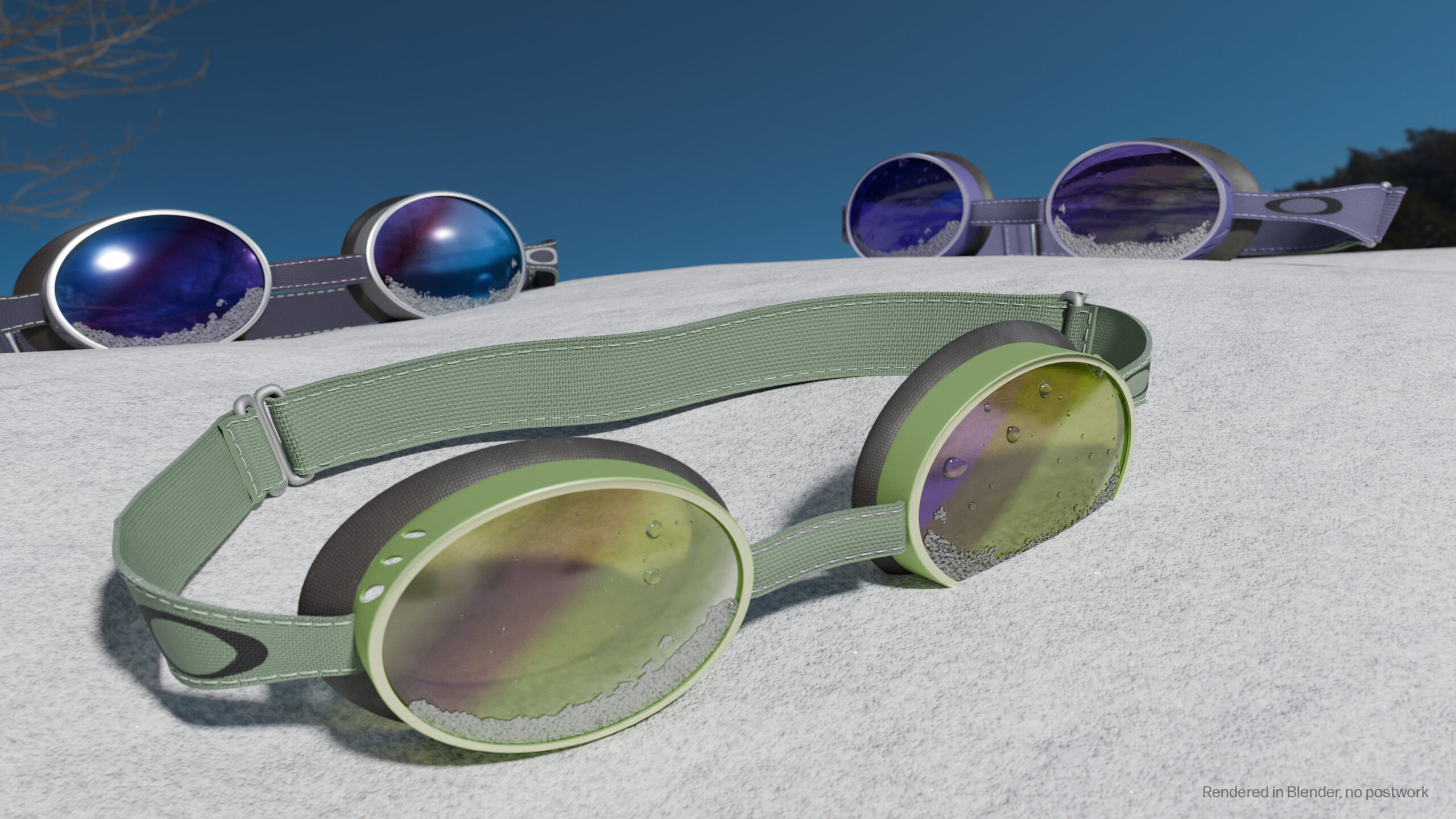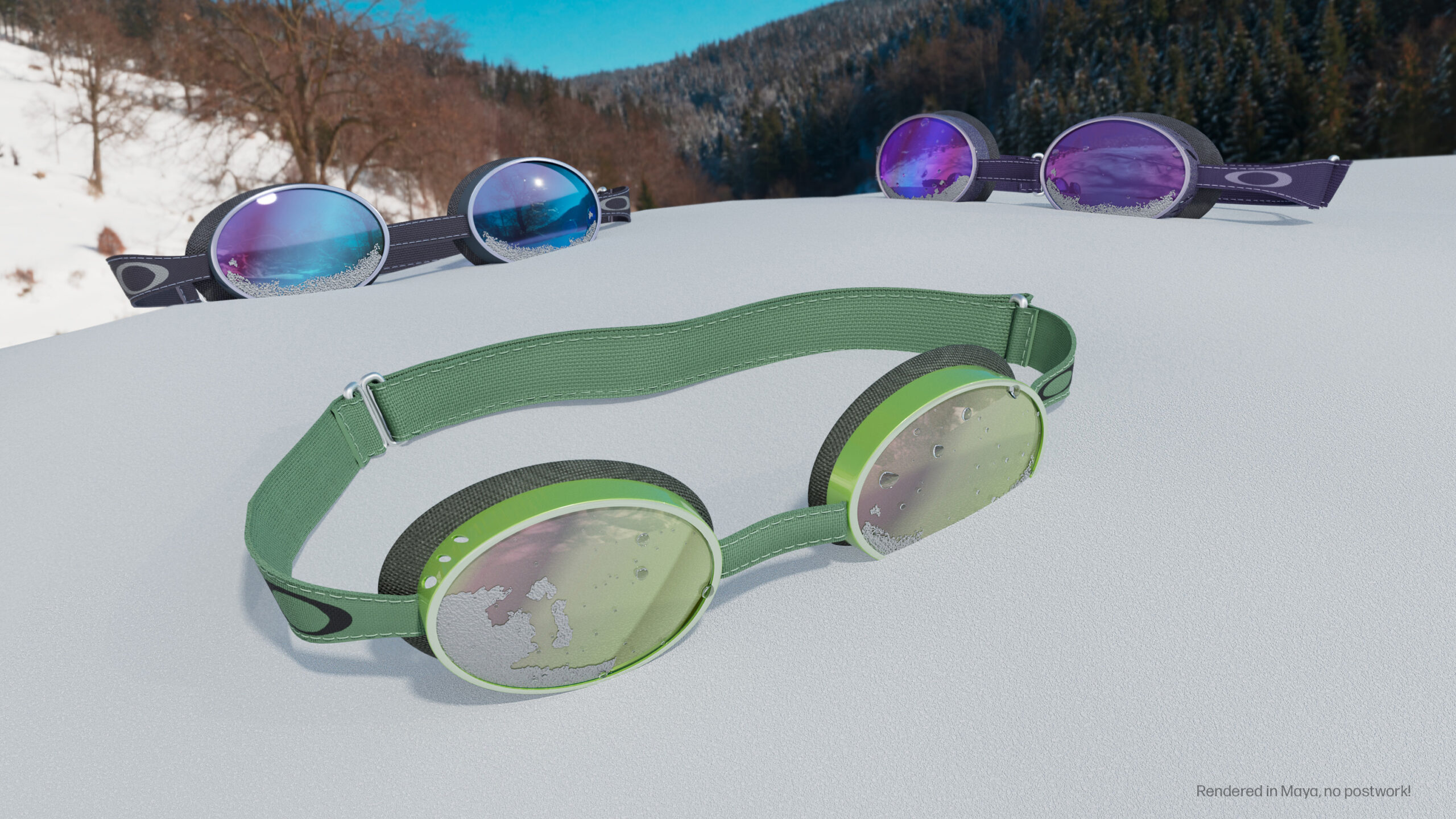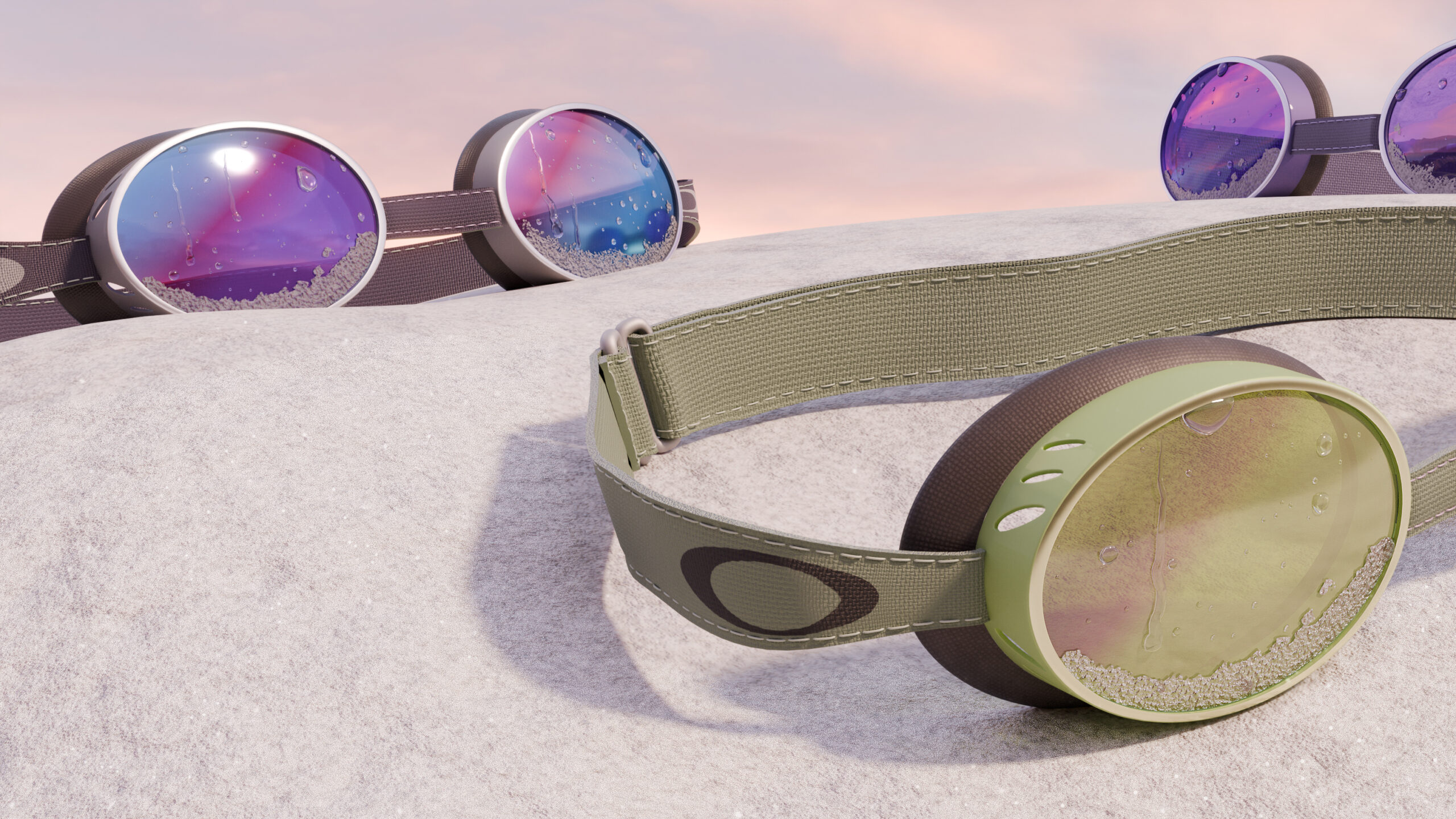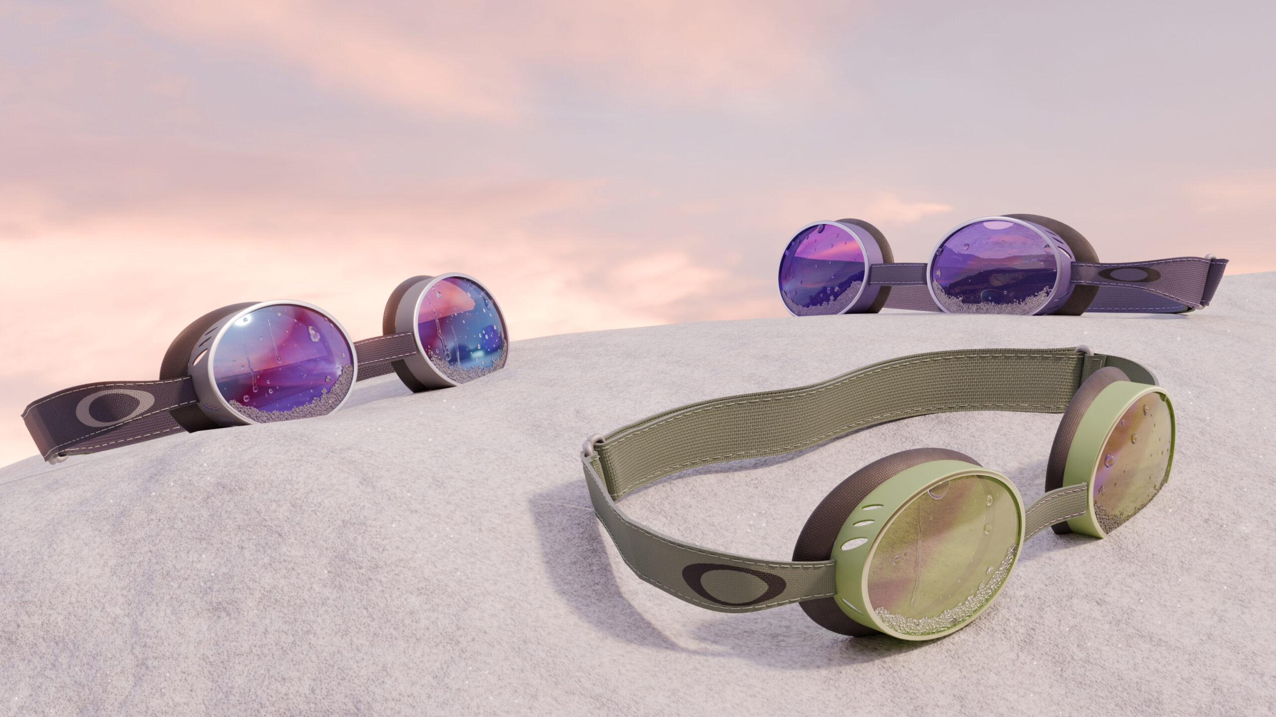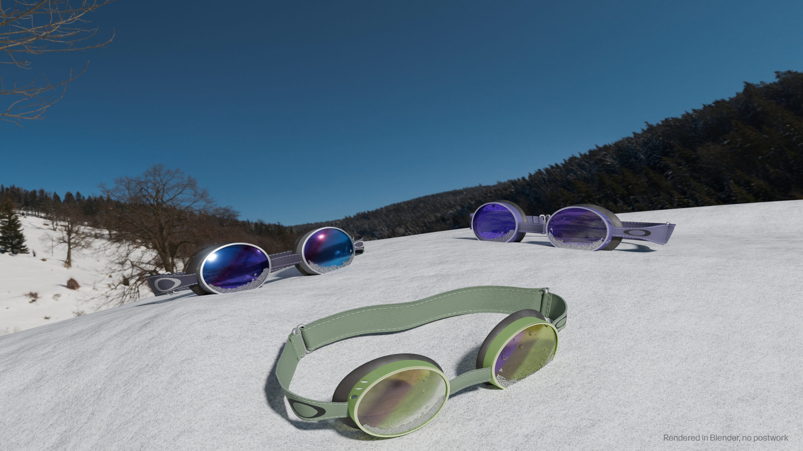 SPORT GOGGLES. Great for snow boarding and skiing and different vibes with color and materials… Renderweekly Winter eyewear challenge. Acknowledgments: people images by cottonwood studio, Kith apparel, Oakley, freepeople. Procreate (sketching), Alias, Blender, Photoshop, Keyshot(rendering), AfterEffects (compositing). No Ai.